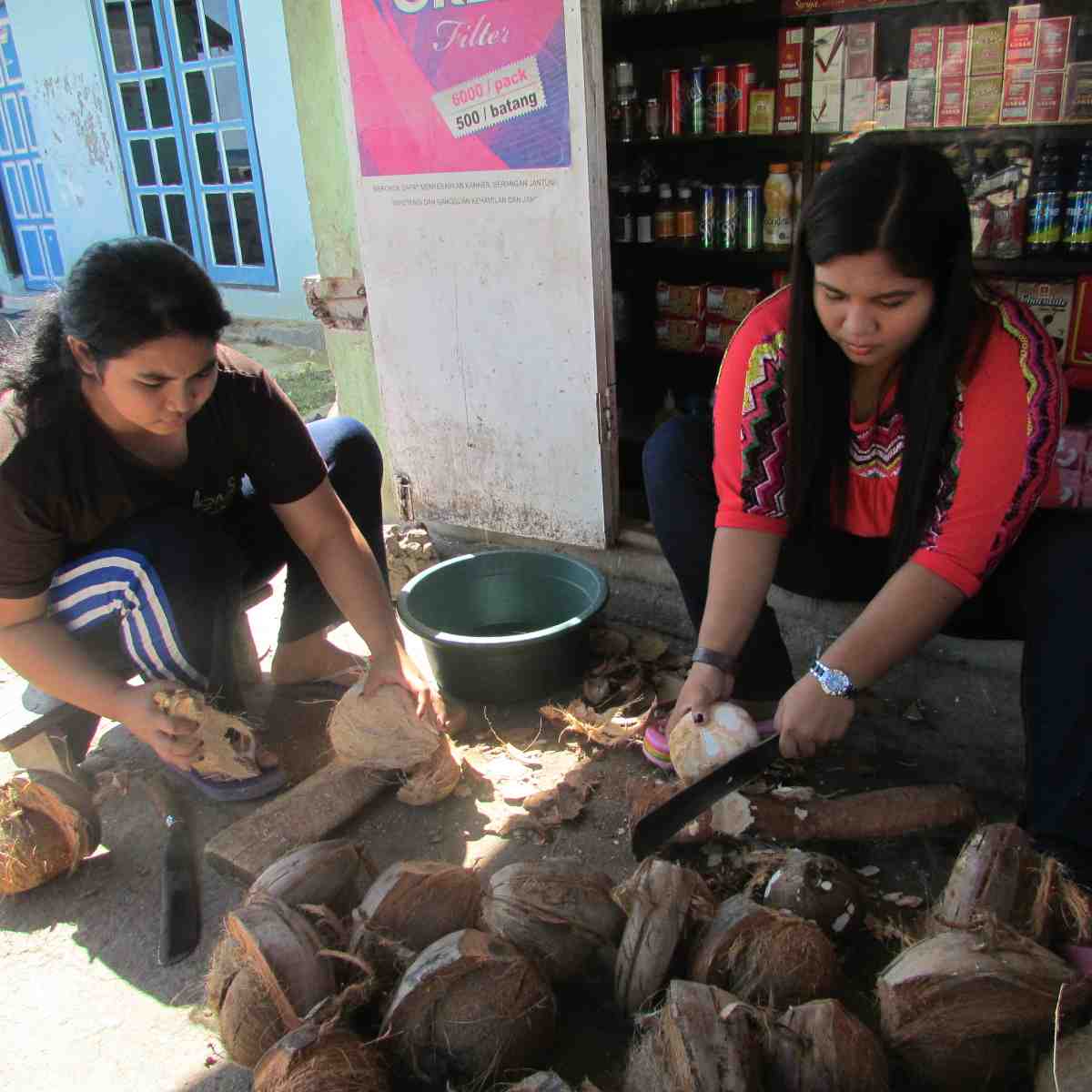 could buy a drink. NO! No money was necessary! They chopped off the outer bits of coconut,